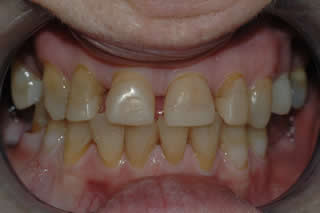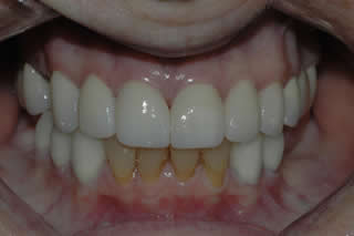 A full mouth reconstruction including dental implants and all porcelain crowns was done.