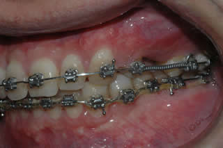 Braces is used in this case first to create sufficient space in order to place a single tooth implant.