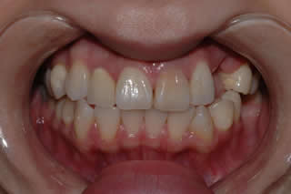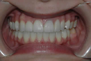 Invisalign clear brace is done first to move the upper left canine into position and straighten the rest of her teeth.
